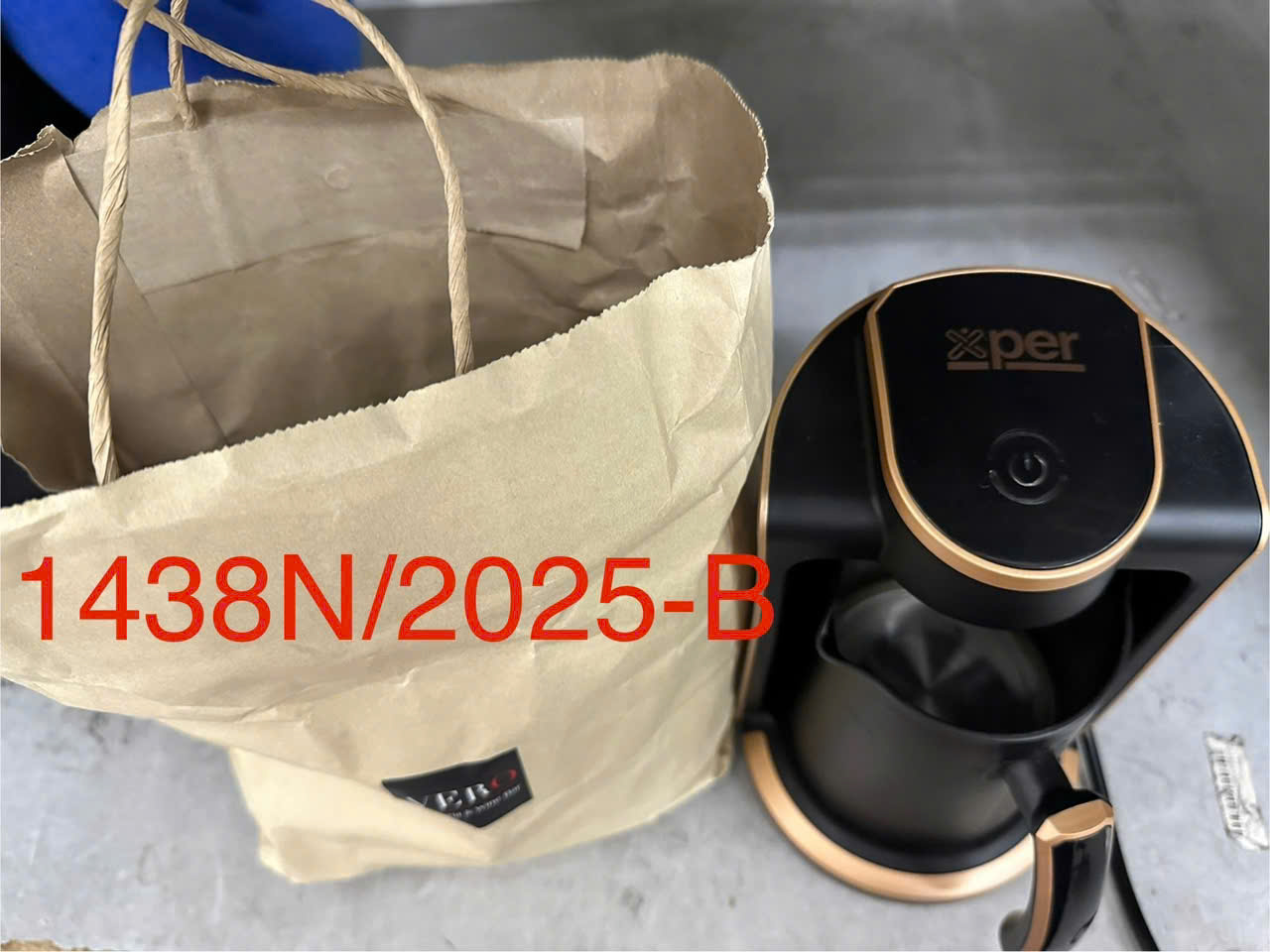 Ngày tiếp nhận: 06/8/2025 Mã hồ sơ: 1438N2025B Mô tả: 01 Túi giấy vàng: 01 Máy pha cà phê mini. |