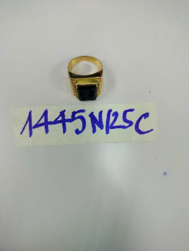 Ngày tiếp nhận: 07/8/2025 Mã hồ sơ: 1445N2025C Mô tả: 01 nhẫn màu vàng có đá màu xanh bên trong có chữ "VSJ 10K". |