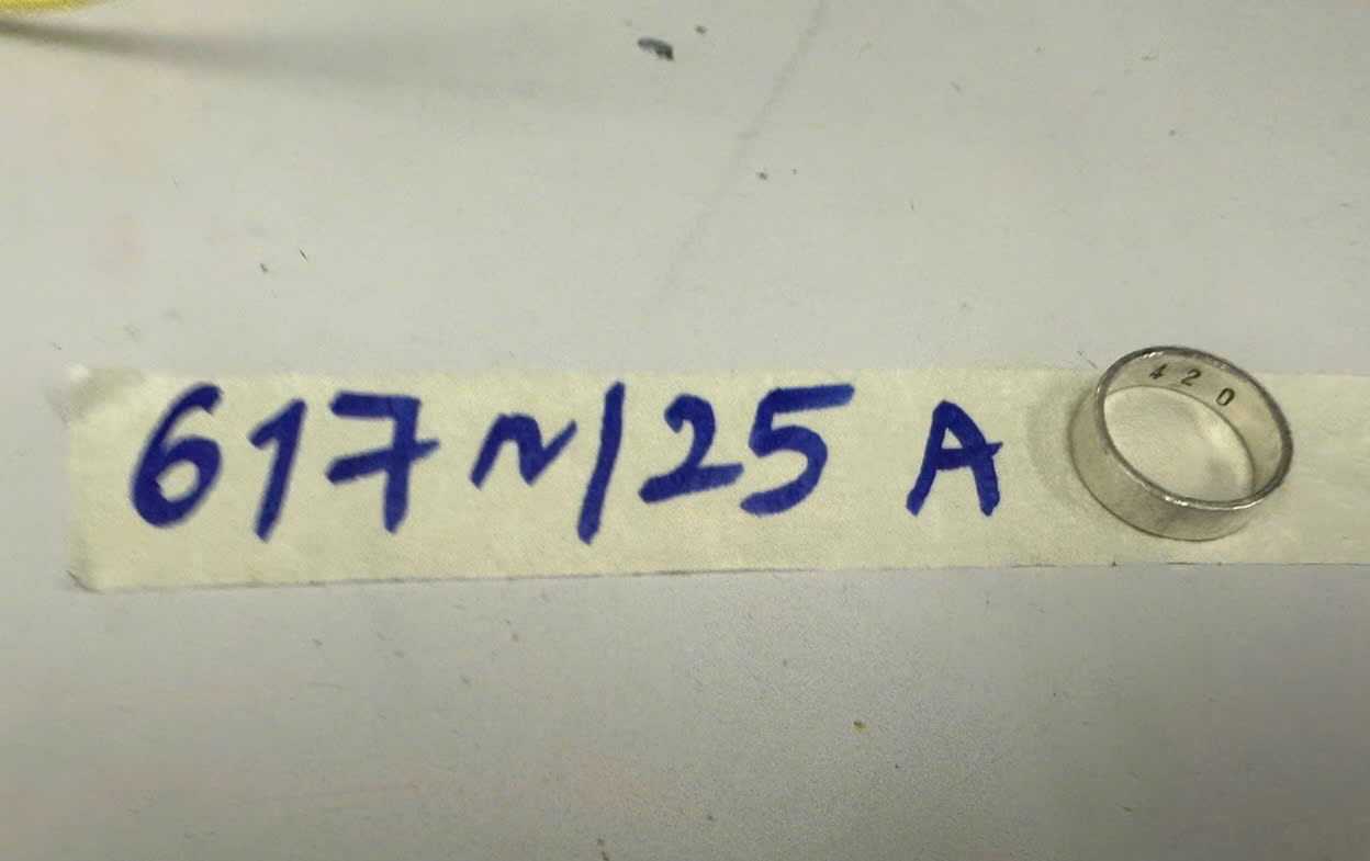 Ngày tiếp nhận: 06/4/2025 Mã hồ sơ: 617N2025A Mô tả: 01 nhẫn kim loại màu trắng có đánh số 420. |