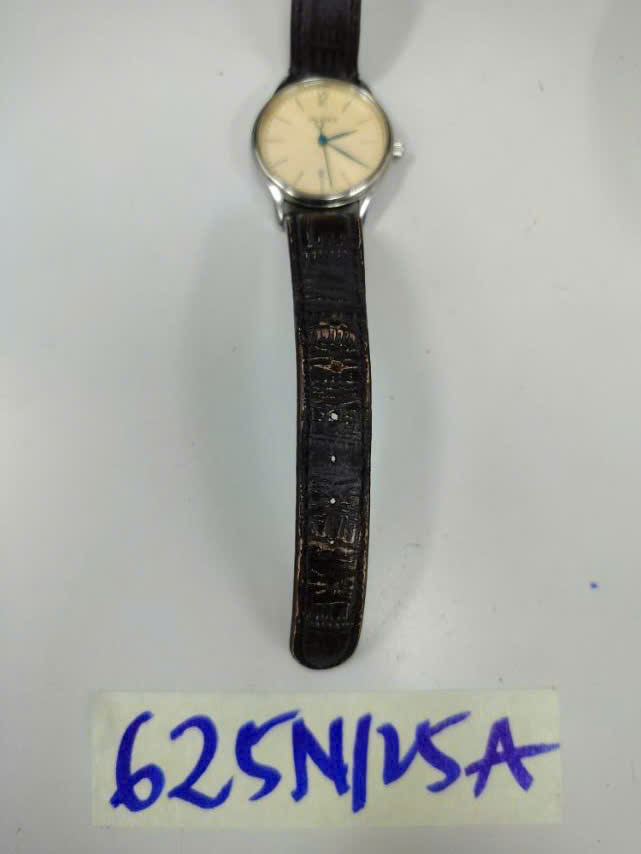 Ngày tiếp nhận: 07/4/2025 Mã hồ sơ: 625N2025A Mô tả: 01 đồng hồ đeo tay bằng da màu nâu sẫm, mặt tròn chữ VALANCE. |