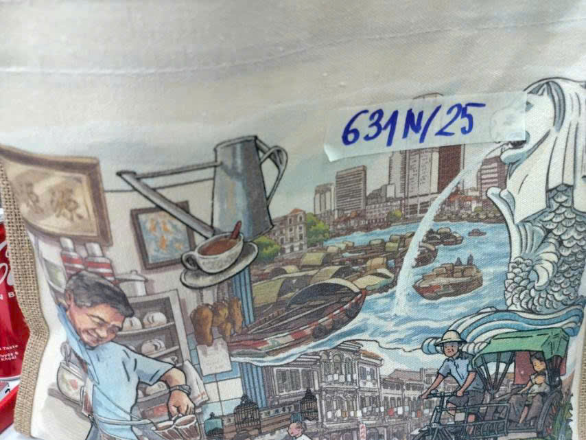Ngày tiếp nhận: 07/4/2025 Mã hồ sơ: 631N2025 Mô tả: 01 túi vải màu vàng có 03 hộp giấy xanh dương chữ SINGAPORE COFFEE. |