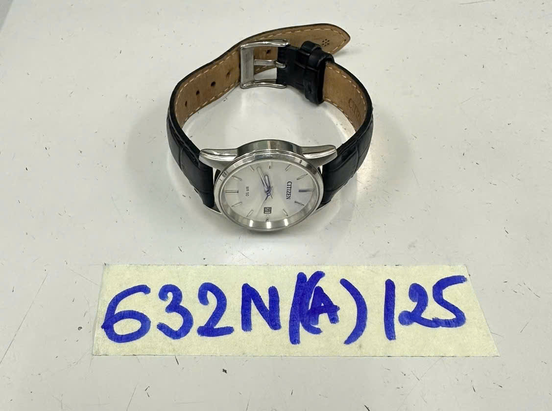 Ngày tiếp nhận: 07/4/2025 Mã hồ sơ: 632N2025A Mô tả: 01 đồng hồ đeo tay dây da màu đen, mặt tròn trắng chữ Citizen. |
