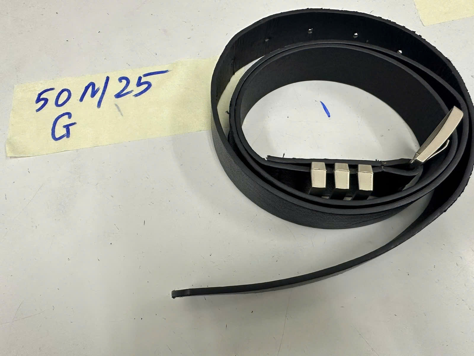 Ngày tiếp nhận: 07/01/2025 Mã hồ sơ: 50N2025F Mô tả: 01 thắt lưng vải màu đen, mặt màu đen có chữ "'GENUINE LEATHER". |