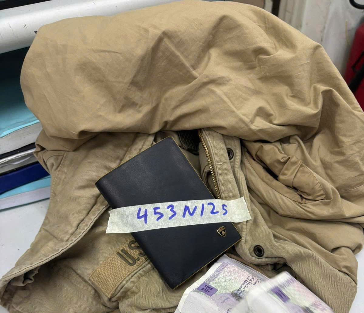 Ngày tiếp nhận: 07/03/2025 Mã hồ sơ: 453N2025 Mô tả: 01 áo khoác vải màu vàng bên trong có 01 bóp da màu đen có: 190 Bank of England, 130 Euro. |