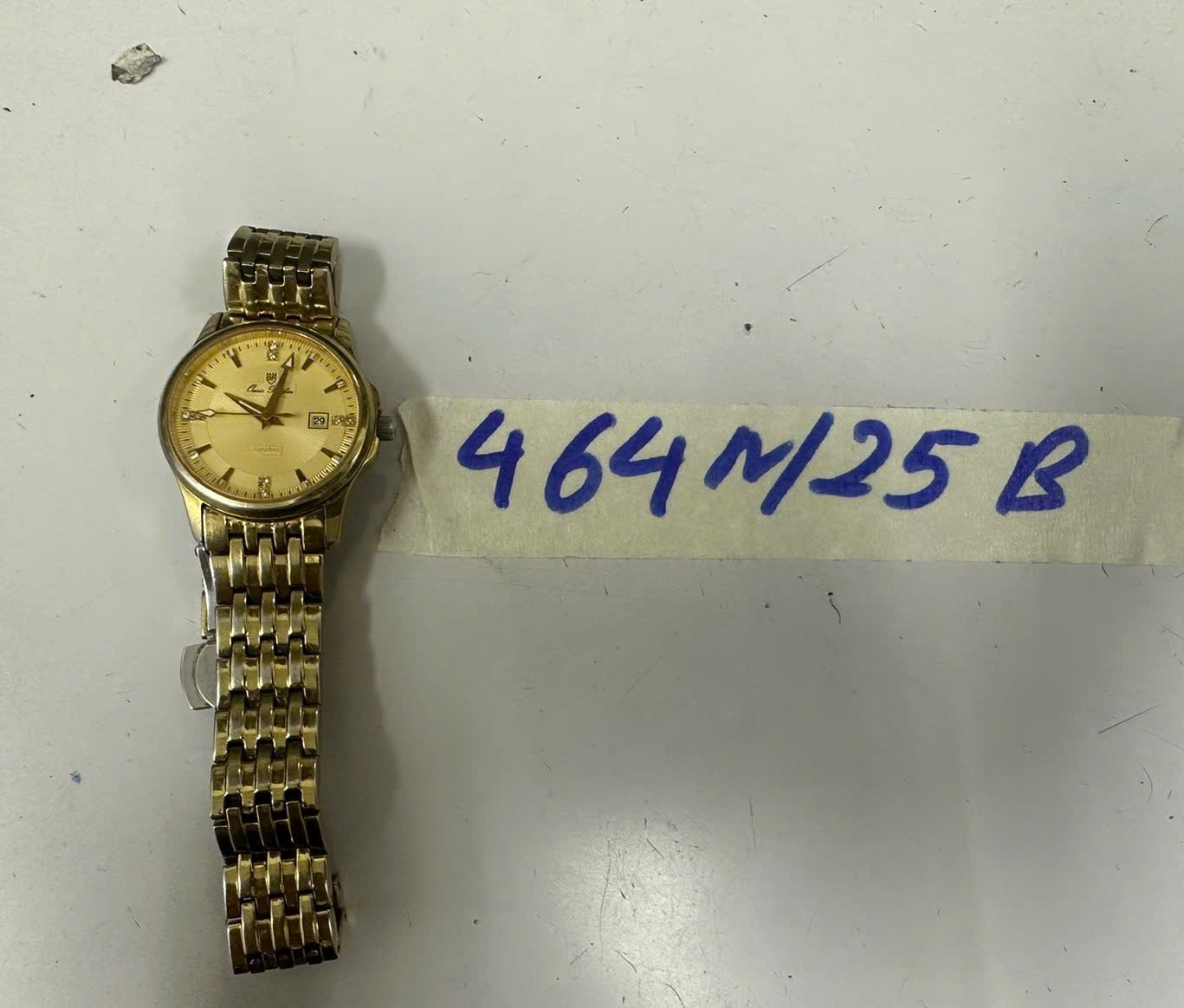 Ngày tiếp nhận: 09/03/2025 Mã hồ sơ: 464N2025B Mô tả: 01 đồng hồ đeo tay màu vàng đã qua sử dụng. |