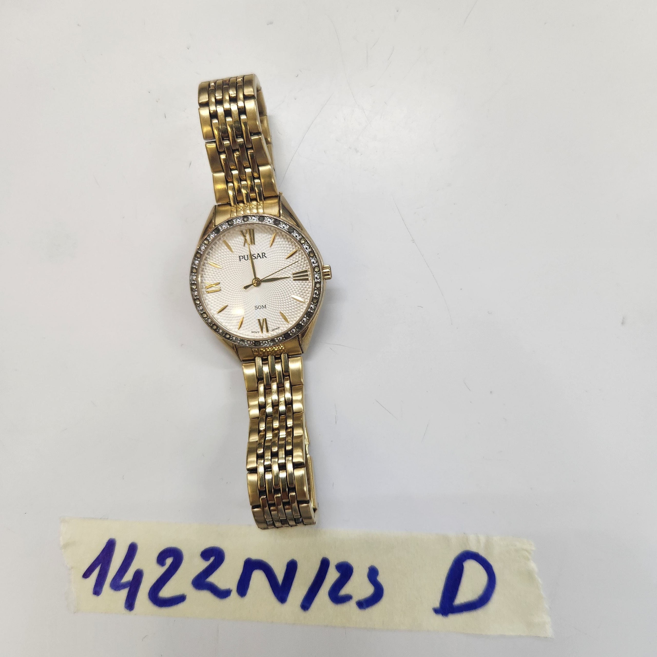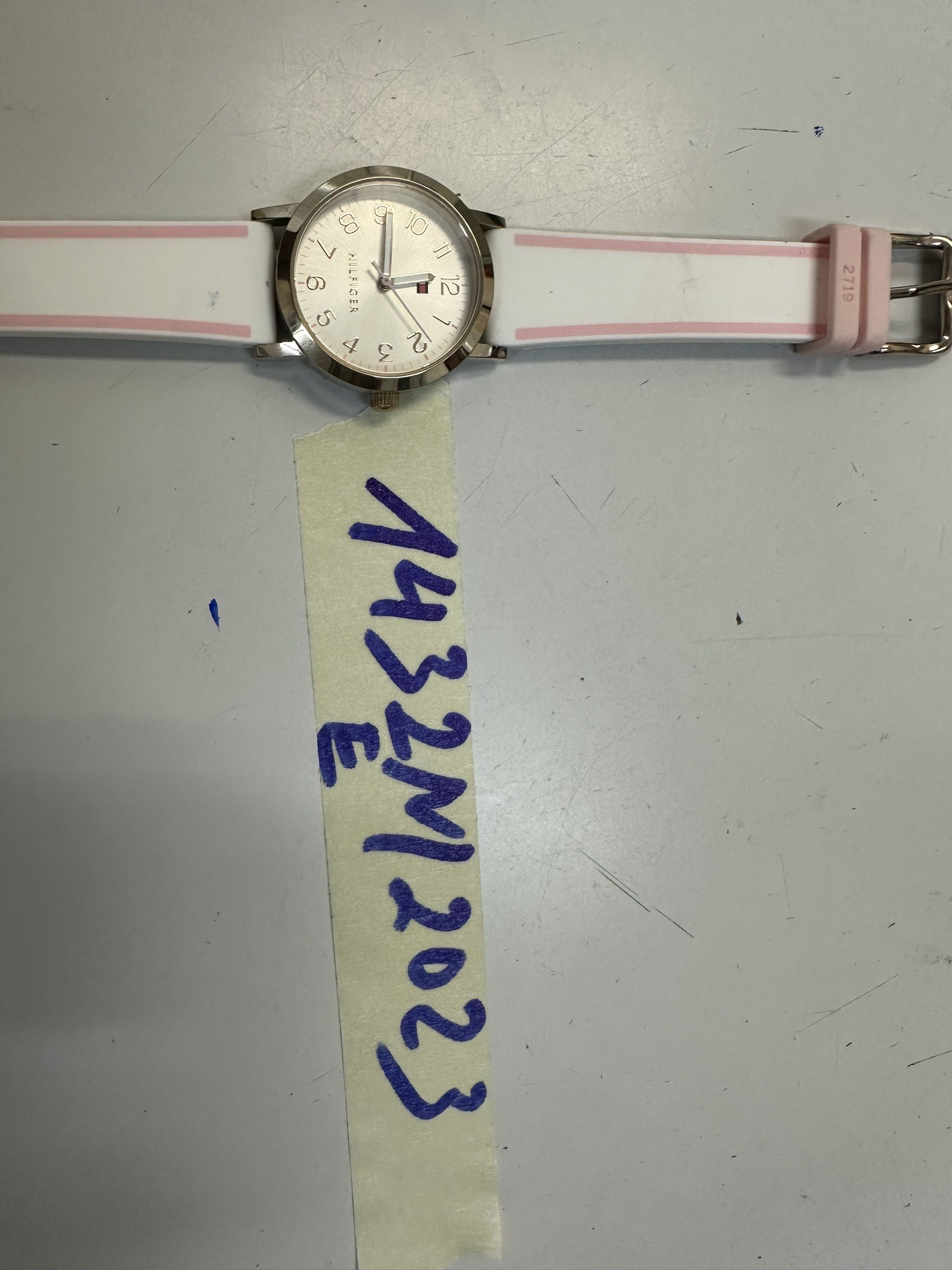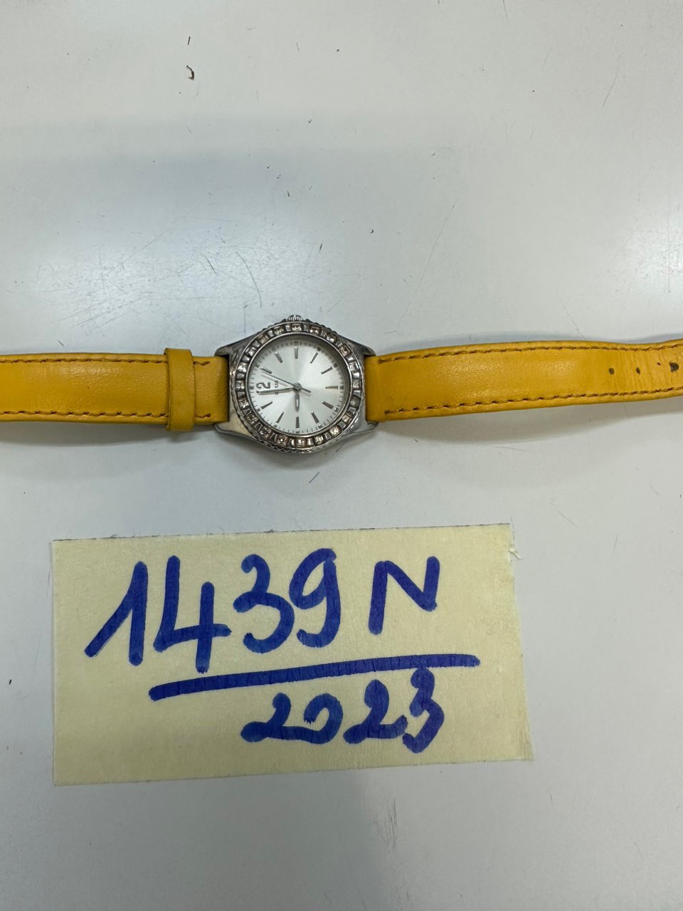 Ngày tiếp nhận: 11/10/2023 Mã hồ sơ: 1439N2023 Mô tả: 01 đồng hồ dây da loại màu vàng có chữ "GUESS. Vị trí: An ninh soi chiếu quốc nội |
