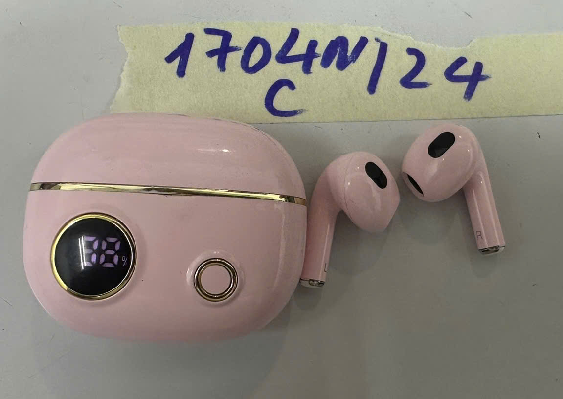 Ngày tiếp nhận: 07/10/2024 Mã hồ sơ: 1704N2024C Mô tả: 01 hộp tai nghe không dây màu hồng bên trong đủ 02 tai nghe. |