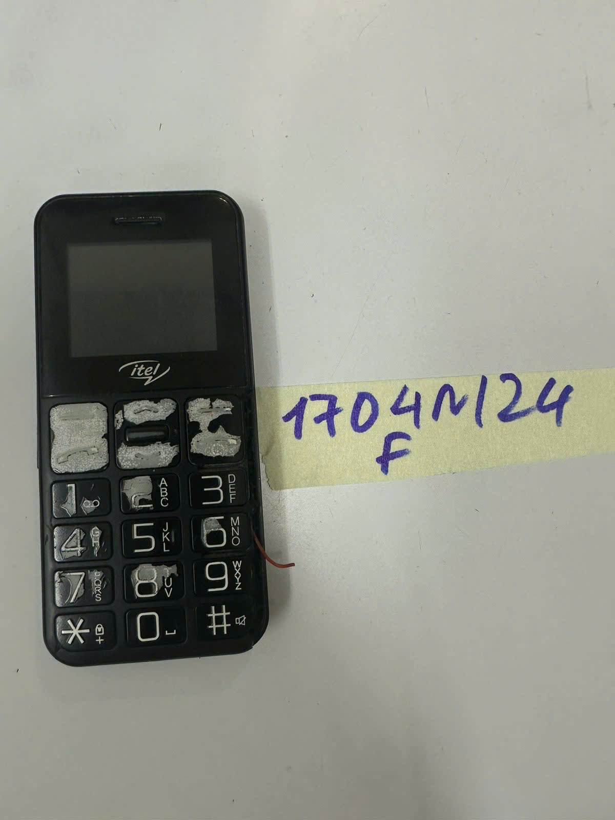 Ngày tiếp nhận: 07/10/2024 Mã hồ sơ: 1704N2024F Mô tả: 01 điện thoại màu đen đã bể trên mặt có chữ ITEL. |