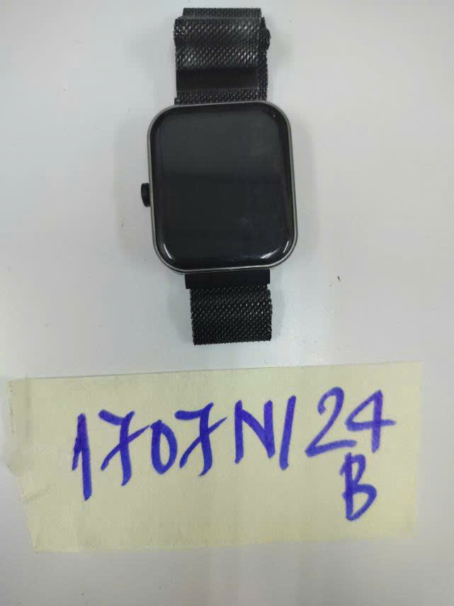 Ngày tiếp nhận: 07/10/2024 Mã hồ sơ: 1707N2024B Mô tả: 01 đồng hồ thông minh màu đen, dây kim loại có chữ ROHS. |