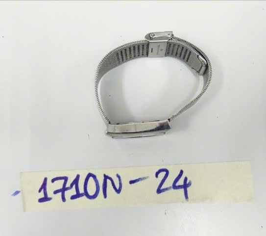 Ngày tiếp nhận: 08/10/2024 Mã hồ sơ: 1710N2024 Mô tả: 01 đồng hồ kim loại màu bạc, kim đồng hồ màu hồng, mặt sau có chữ fastrack, dây kim loại màu bạc. |