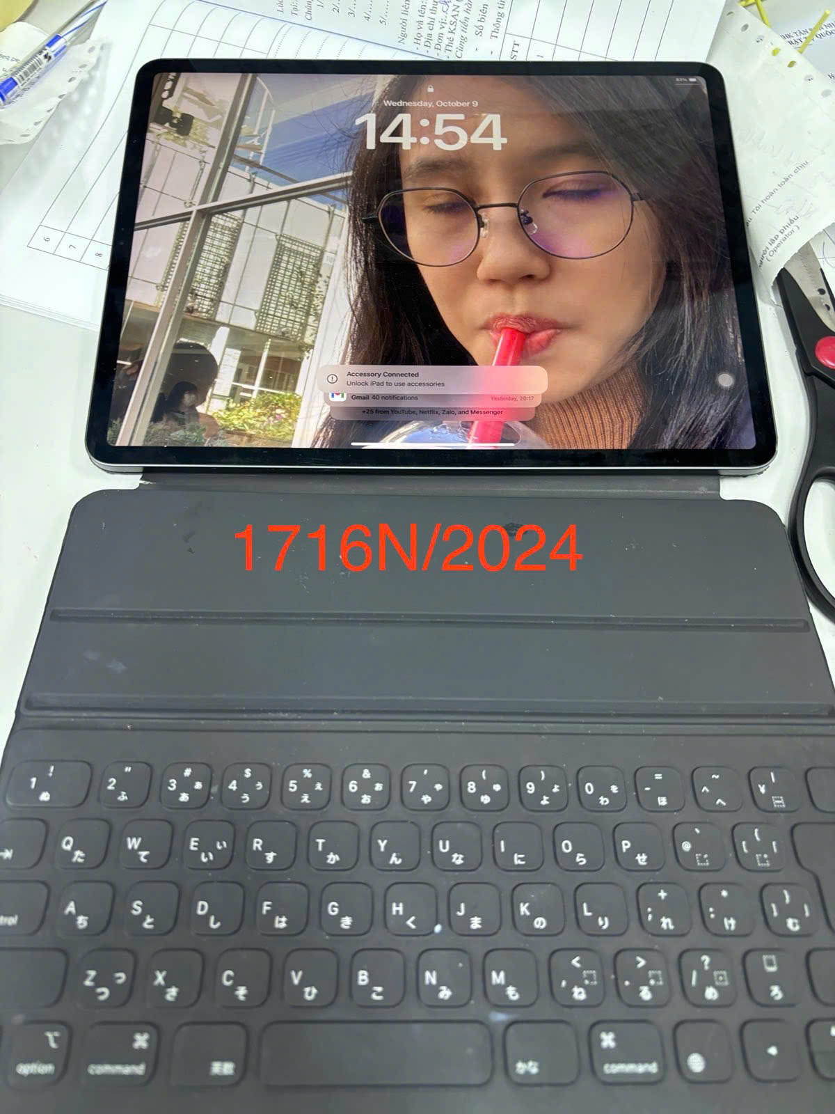 Ngày tiếp nhận: 09/10/2024 Mã hồ sơ: 1716N2024 Mô tả: 01 máy tính bảng màu xám IPAD PRO và 01 bàn phím. |