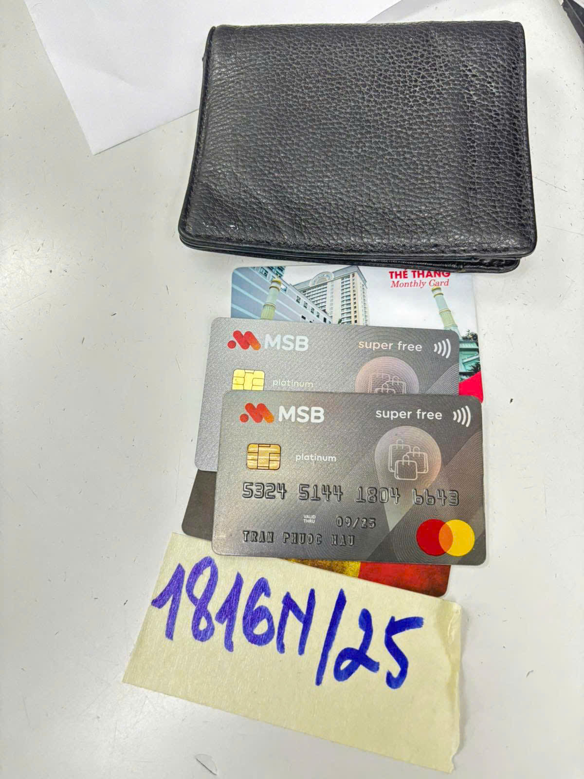 Ngày tiếp nhận: 07/10/2025 Mã hồ sơ: 1816N2025 Mô tả: 01 ví nam màu đen có 01 thẻ căn cước +2 thẻ ngân hàng cùng tên Trần Phước Hậu và số tiền 317000 đồng. |