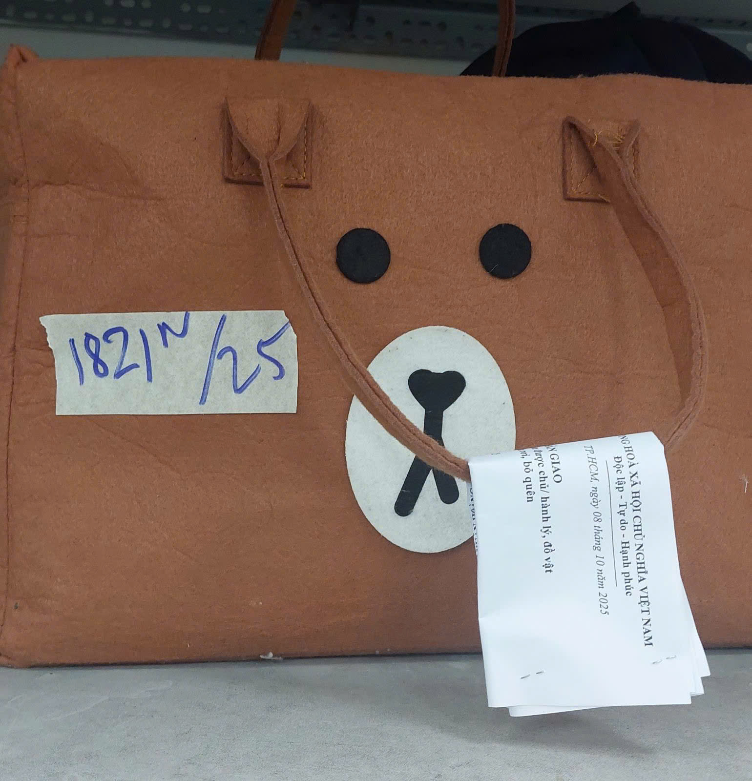 Ngày tiếp nhận: 07/10/2025 Mã hồ sơ: 1821N2025 Mô tả: 01 túi vải màu nâu có quần áo và đồ dùng cá nhân đã qua sử dụng. |