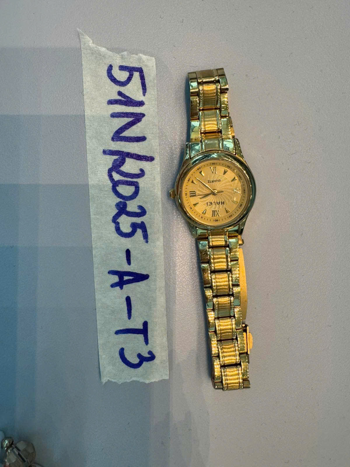 Ngày tiếp nhận: 07/10/2025 Mã hồ sơ: 51N2025A Mô tả: 01 đồng hồ màu vàng hiệu HAIEI. |