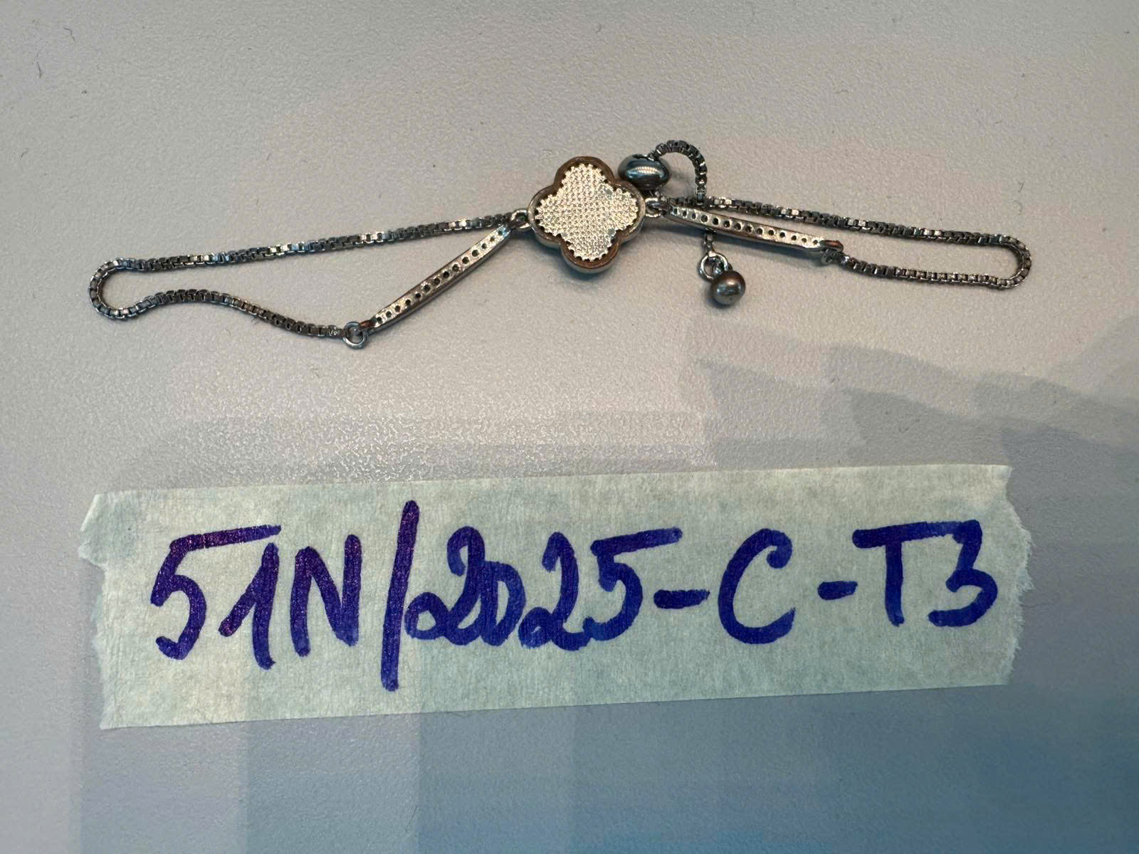 Ngày tiếp nhận: 07/10/2025 Mã hồ sơ: 51N2025C Mô tả: 01 chiếc lắc tay kim loại màu bạc. |