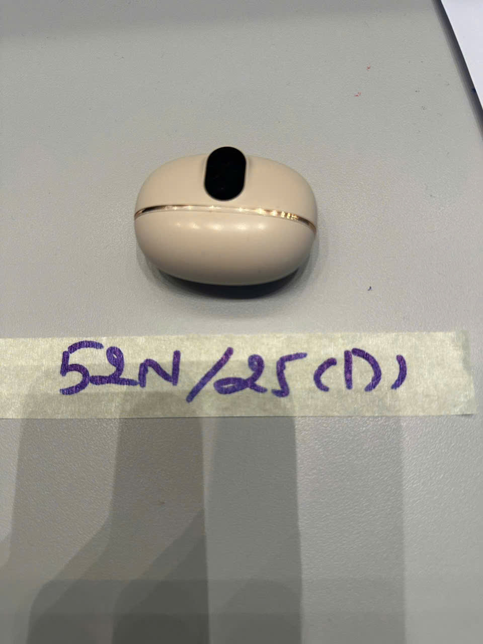 Ngày tiếp nhận: 08/10/2025 Mã hồ sơ: 52N2025D Mô tả: 01 tai nghe màu vàng nhạt. |