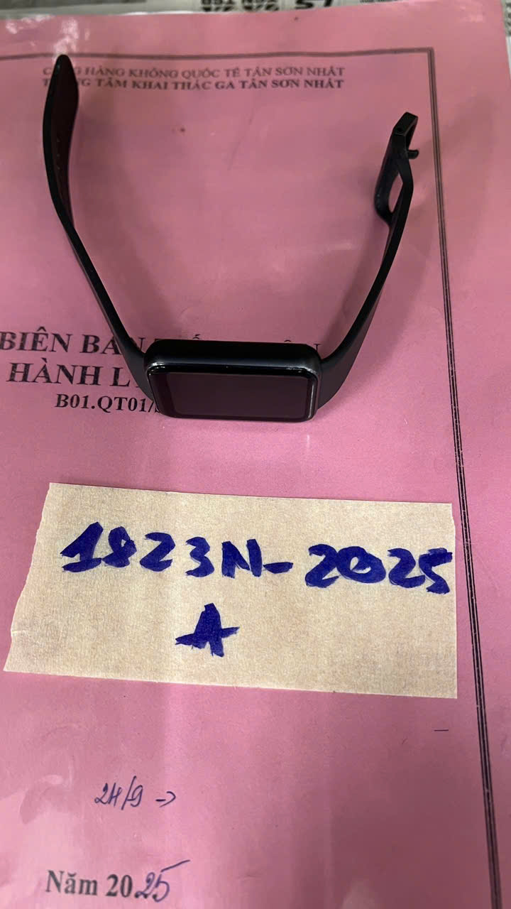 Ngày tiếp nhận: 08/10/2025 Mã hồ sơ: 1823N2025A Mô tả: 01 đồng hồ GALAXY FIT3 (model number: SM-R390) màu đen, dây cao su màu đen. |
