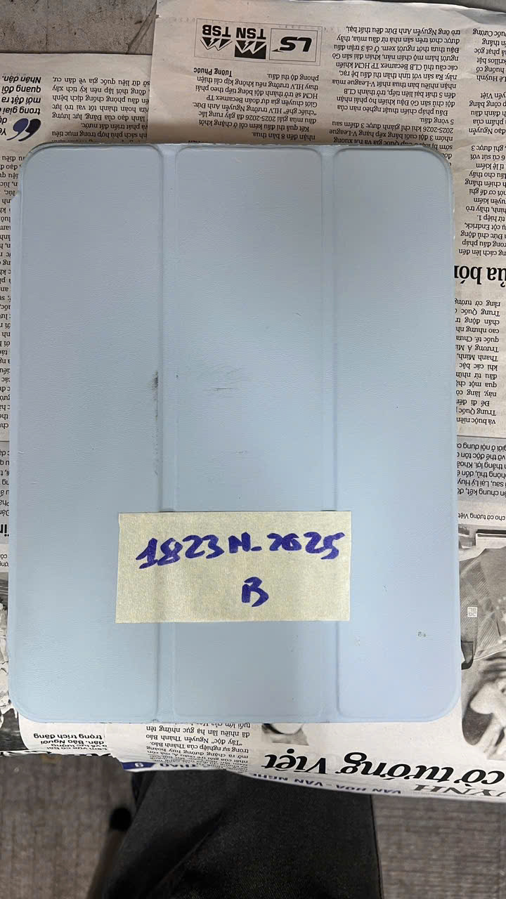 Ngày tiếp nhận: 08/10/2025 Mã hồ sơ: 1823N2025B Mô tả: 01 iPad màu xám, model A2316, serial: DMPG1XQQ16X, ốp lưng màu xanh dương nhạt. |