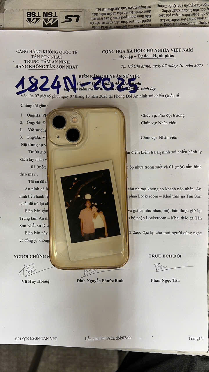 Ngày tiếp nhận: 08/10/2025 Mã hồ sơ: 1824N2025 Mô tả: 01 điện thoại màu trắng mang logo APPLE kèm ốp nhựa trong suốt và 01 tấm hình theo máy. |