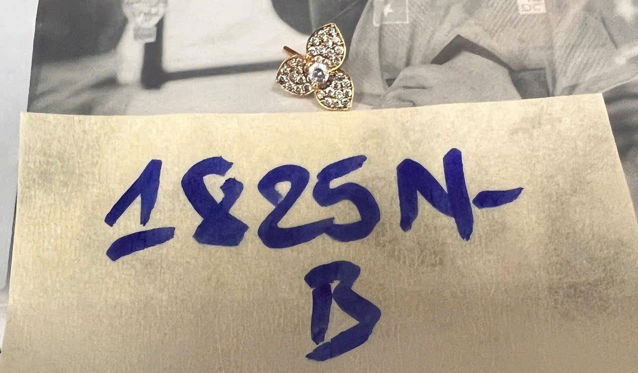 Ngày tiếp nhận: 08/10/2025 Mã hồ sơ: 1825N2025B Mô tả: 01 bông tai kim loại màu vàng hình bông hoa. |