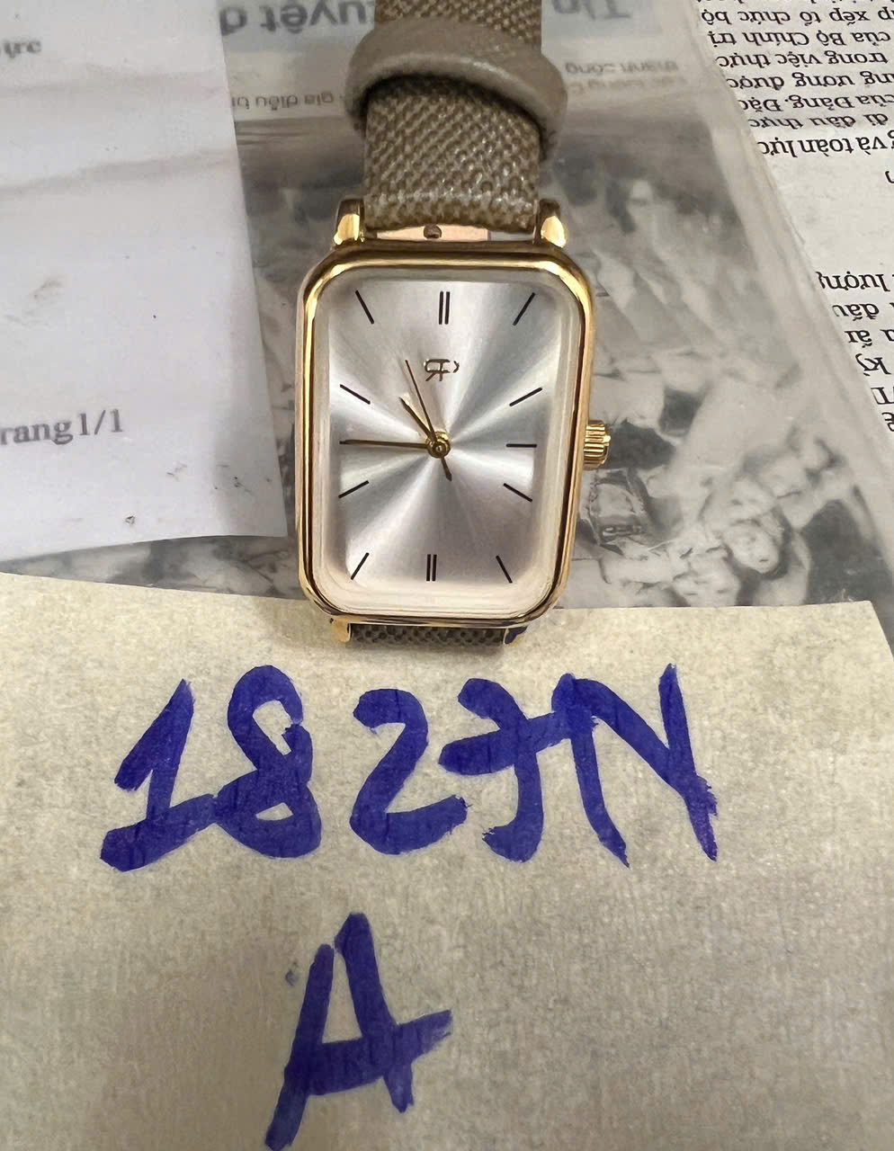 Ngày tiếp nhận: 08/10/2025 Mã hồ sơ: 1827N2025A Mô tả: 01 đồng hồ mặt chữ nhật bằng kim loại có chữu PARFOIS, dây da màu xám pha nâu. |