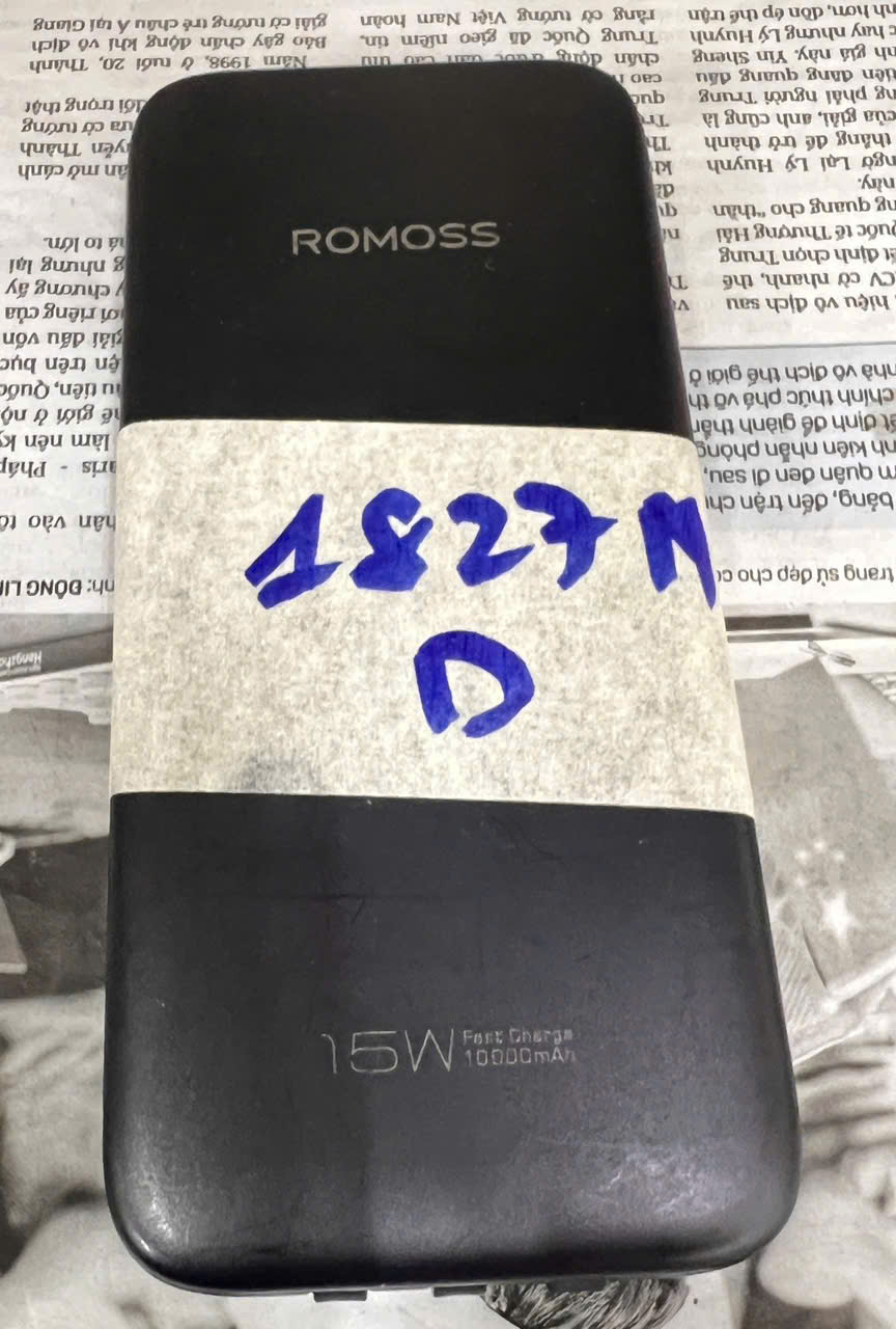 Ngày tiếp nhận: 08/10/2025 Mã hồ sơ: 1827N2025D Mô tả: 01 pin sạc dự phòng ROMOSS 15w Fast charge 10000mAh. |