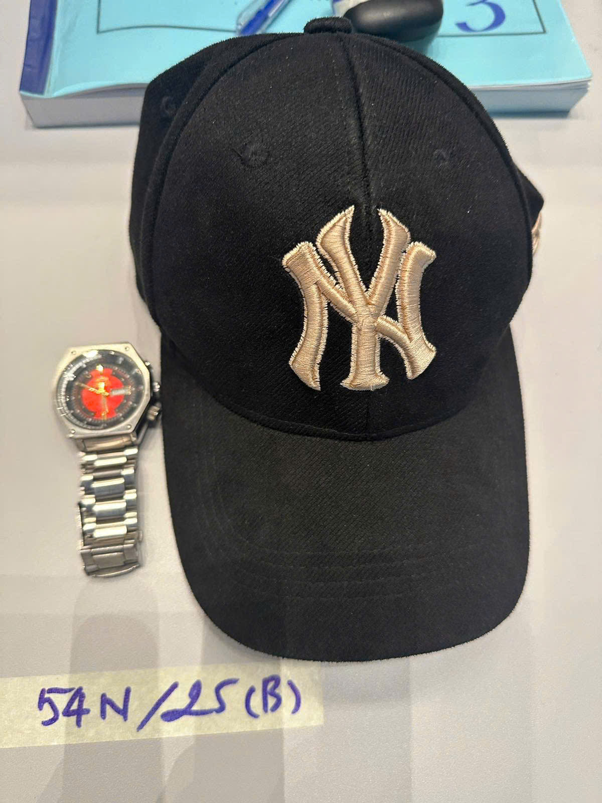 Ngày tiếp nhận: 09/10/2025 Mã hồ sơ: 54N2025B Mô tả: 01 nón màu đen hiệu MLB, 01 dây đồng hồ kim loại màu đỏ. |