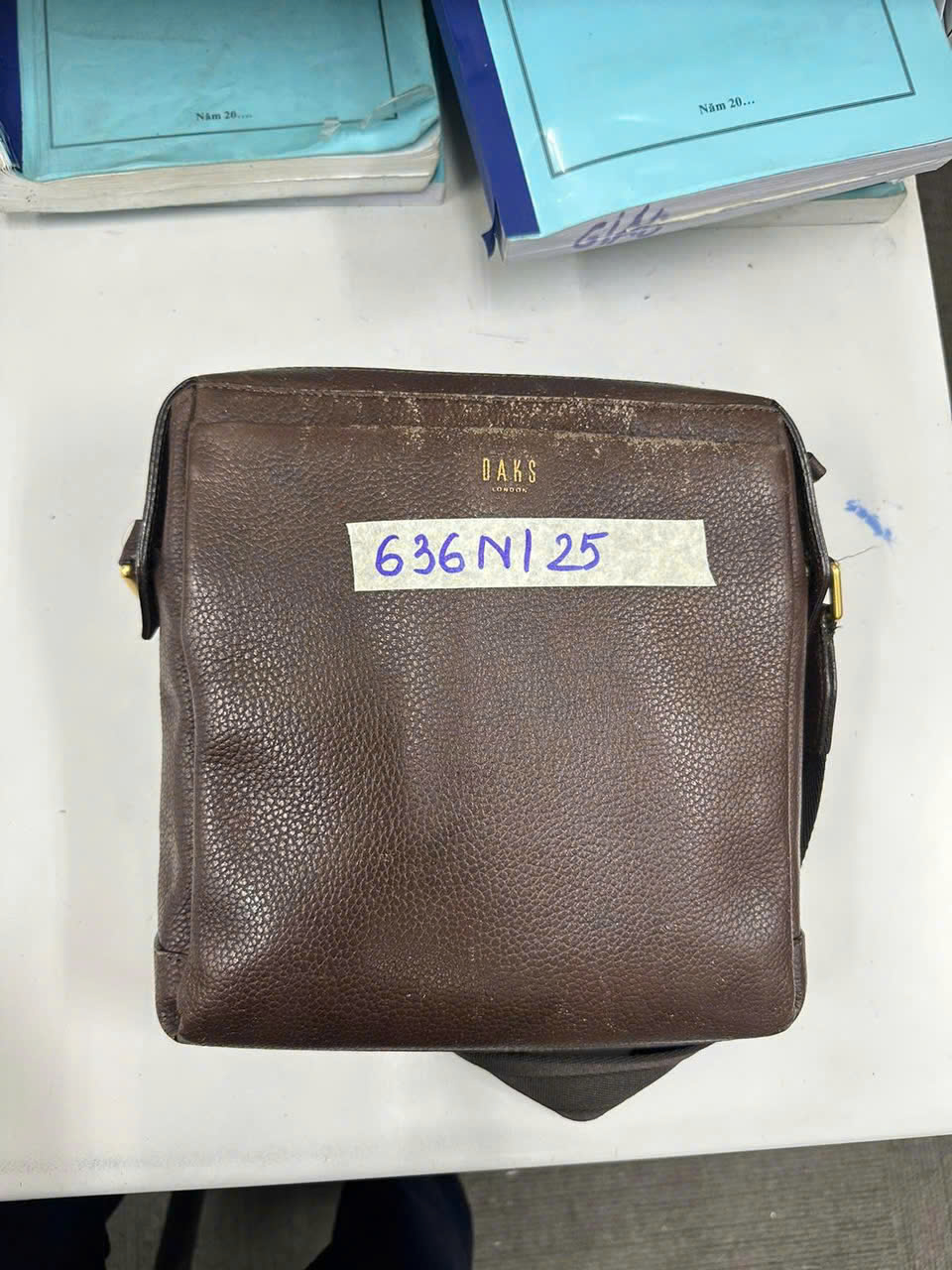 Ngày tiếp nhận: 08/4/2025 Mã hồ sơ: 636N2025 Mô tả: 01 túi da màu nâu không khóa, bên trong có 2 ví màu nâu đã sử dụng, 01 hộp giấy AMETH JEWELRY Since 1986 trong hộp có 2 dây. |