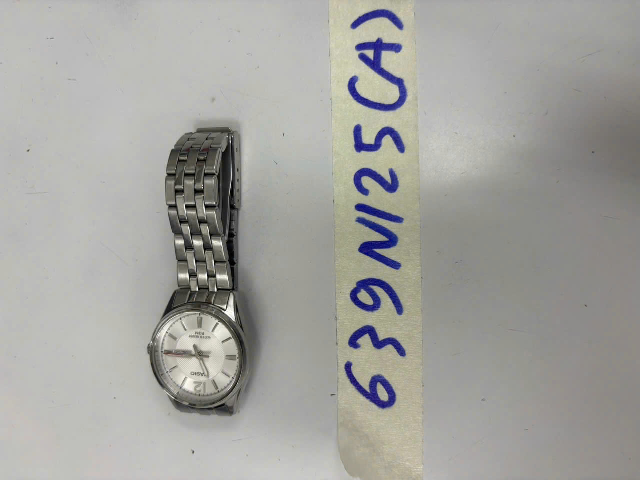 Ngày tiếp nhận: 08/4/2025 Mã hồ sơ: 639N2025A Mô tả: 01 đồng hồ dây kim loại màu bạc, mặt trongm àu trắng , có chữ CASIO. |