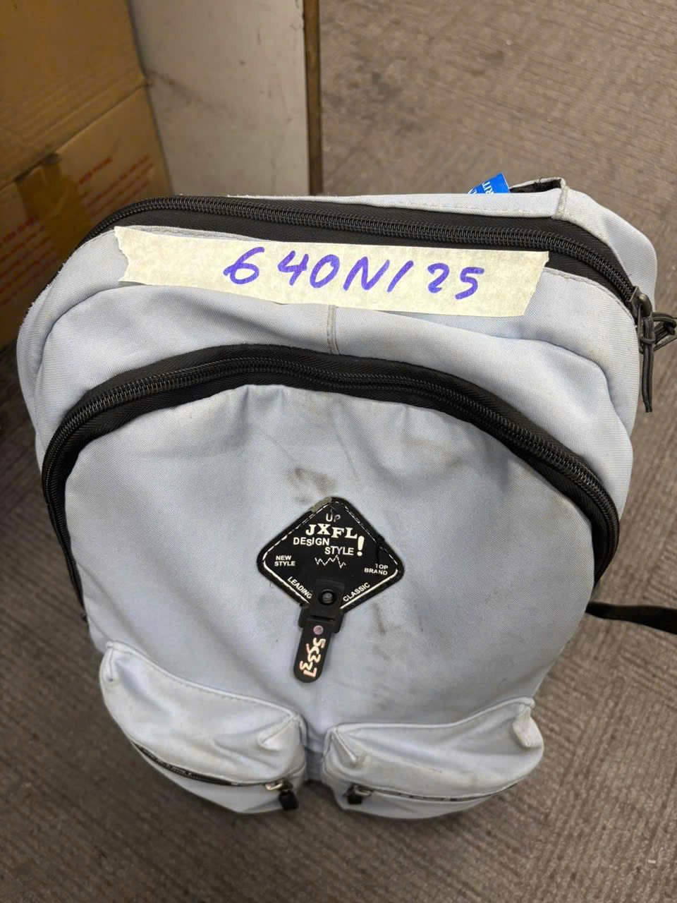 Ngày tiếp nhận: 08/4/2025 Mã hồ sơ: 639N2025C Mô tả: 01 balo màu đen có chữ DEGREUr bên trong có 01 máy sấy tóc, 01 máy duỗi tóc, 01 sạc dự phòng, 02 chai nước hoa, 02 giày cao gót. |