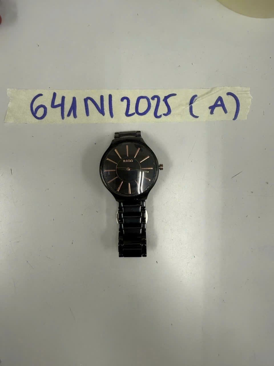 Ngày tiếp nhận: 09/4/2025 Mã hồ sơ: 641N2025A Mô tả: 01 đồng hồ màu đen có chữ RADO, dây kim loại màu đen. |