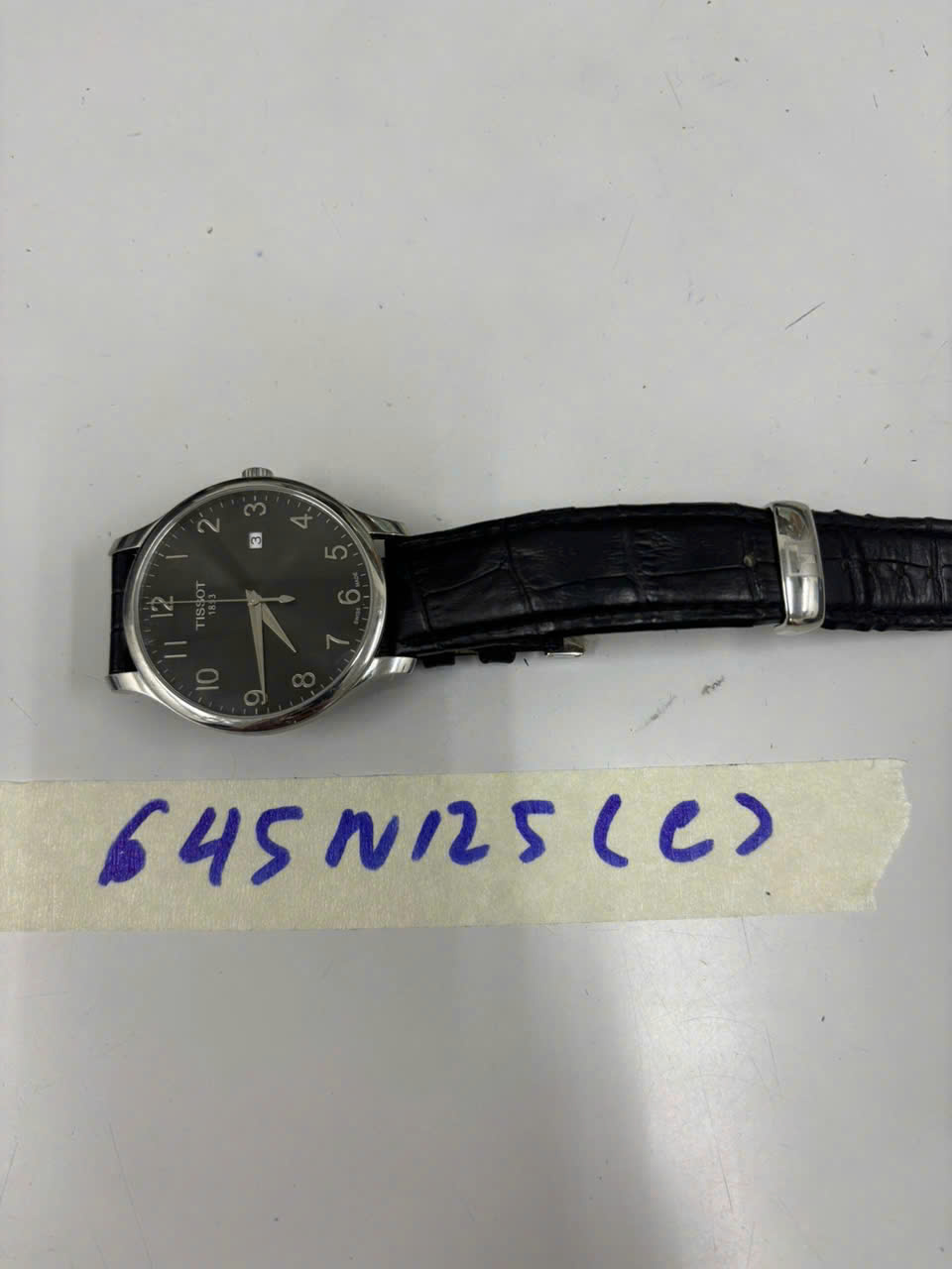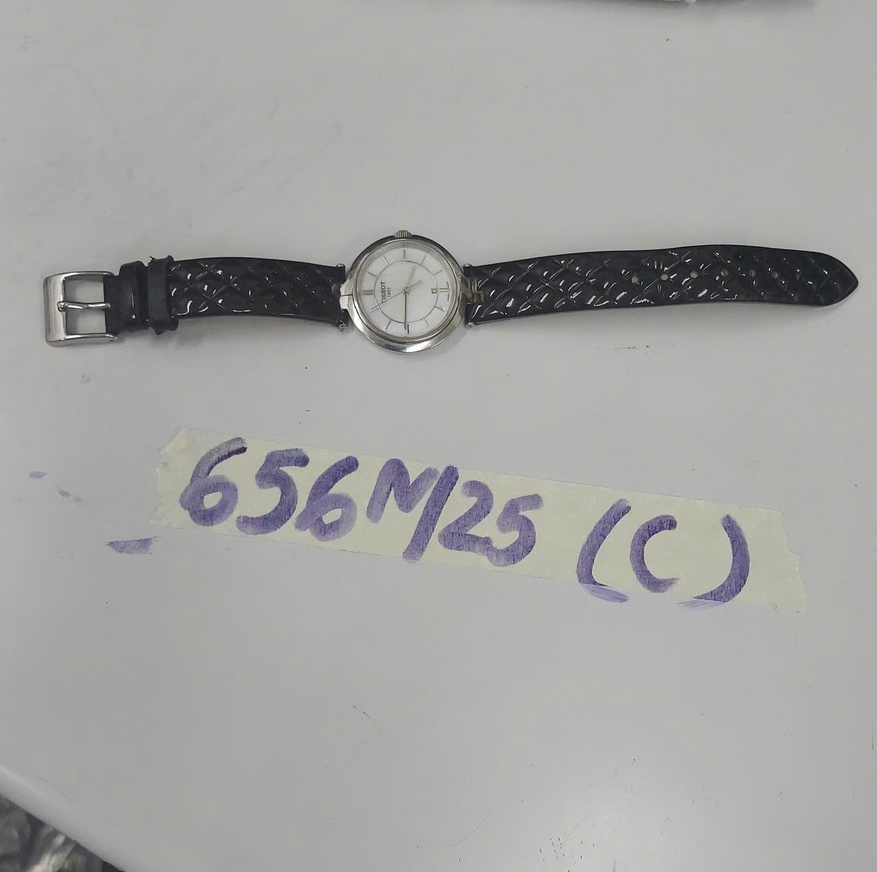 Ngày tiếp nhận: 09/4/2025 Mã hồ sơ: 645N2025C Mô tả: 01 đồng hồ dây da mặt tròn màu đen, có chữ TISSOT. |