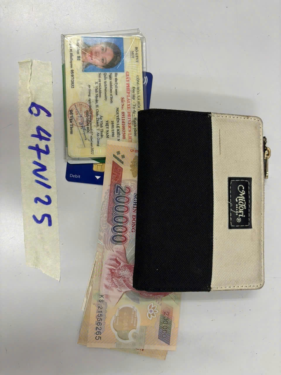 Ngày tiếp nhận: 09/4/2025 Mã hồ sơ: 647N2025 Mô tả: 01 ví màu đen bên trong có: 570.000vnđ, nhiều thẻ nhựa tên Nguyễn Lê Kiều My. |