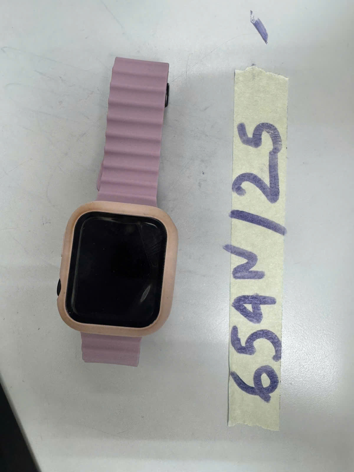 Ngày tiếp nhận: 10/4/2025 Mã hồ sơ: 654N2025 Mô tả: 01 đồng hồ thông minh mảu đen "có chữ APPLE WATCH " ốp nhựa hồng. |