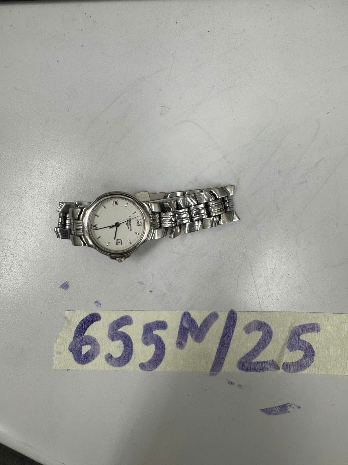 Ngày tiếp nhận: 10/4/2025 Mã hồ sơ: 655N2025 Mô tả: 01 đồng hồ màu trắng có chử "longines" kim loại trắng. |