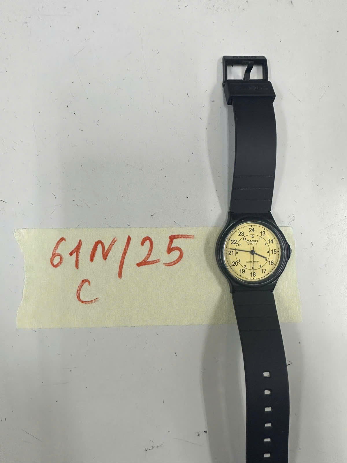 Ngày tiếp nhận: 10/01/2025 Mã hồ sơ: 61N2025C Mô tả: 01 đồng hồ Casio màu đen dâu cao su màu đen. |