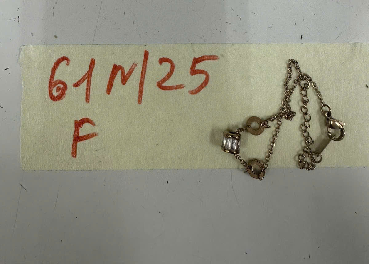 Ngày tiếp nhận: 10/01/2025 Mã hồ sơ: 60N2025C Mô tả: 01 lắc tay kim loại. |
