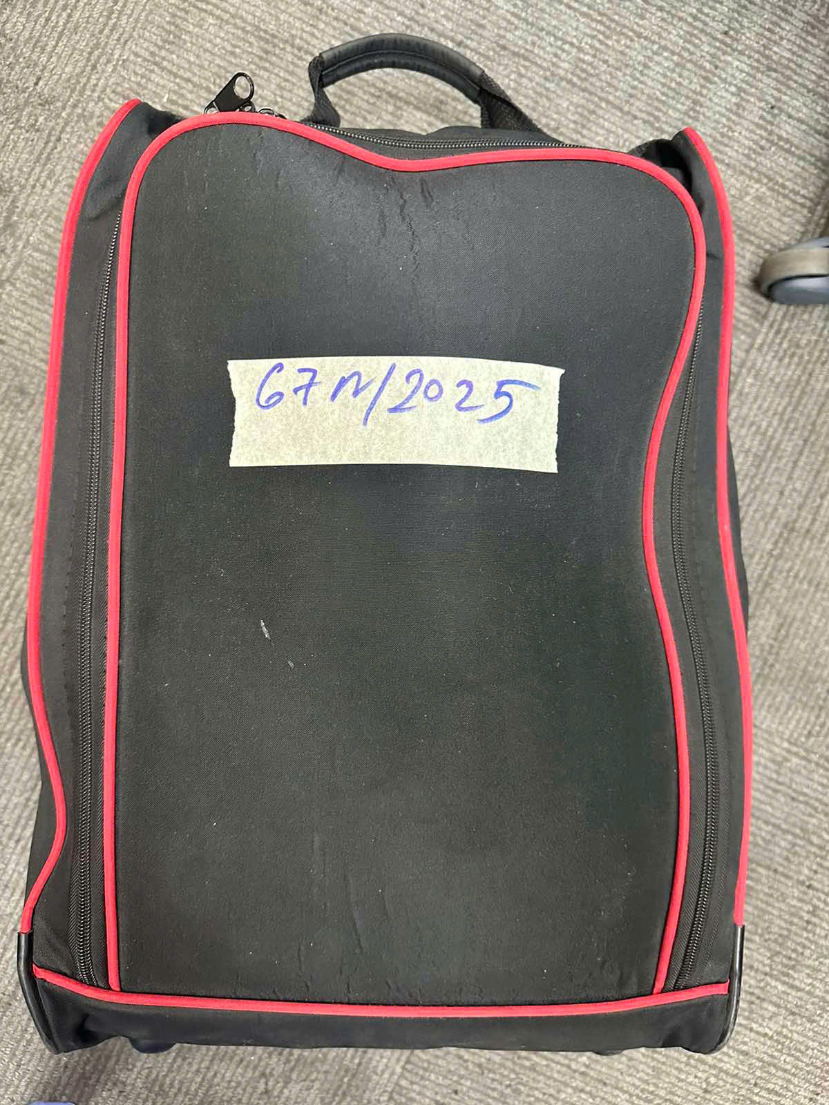 Ngày tiếp nhận: 10/01/2025 Mã hồ sơ: 67N2025 Mô tả: 01 valy kéo băng vải màu đen, bên trong có chứa: quần áo (đã qua sử dụng). |