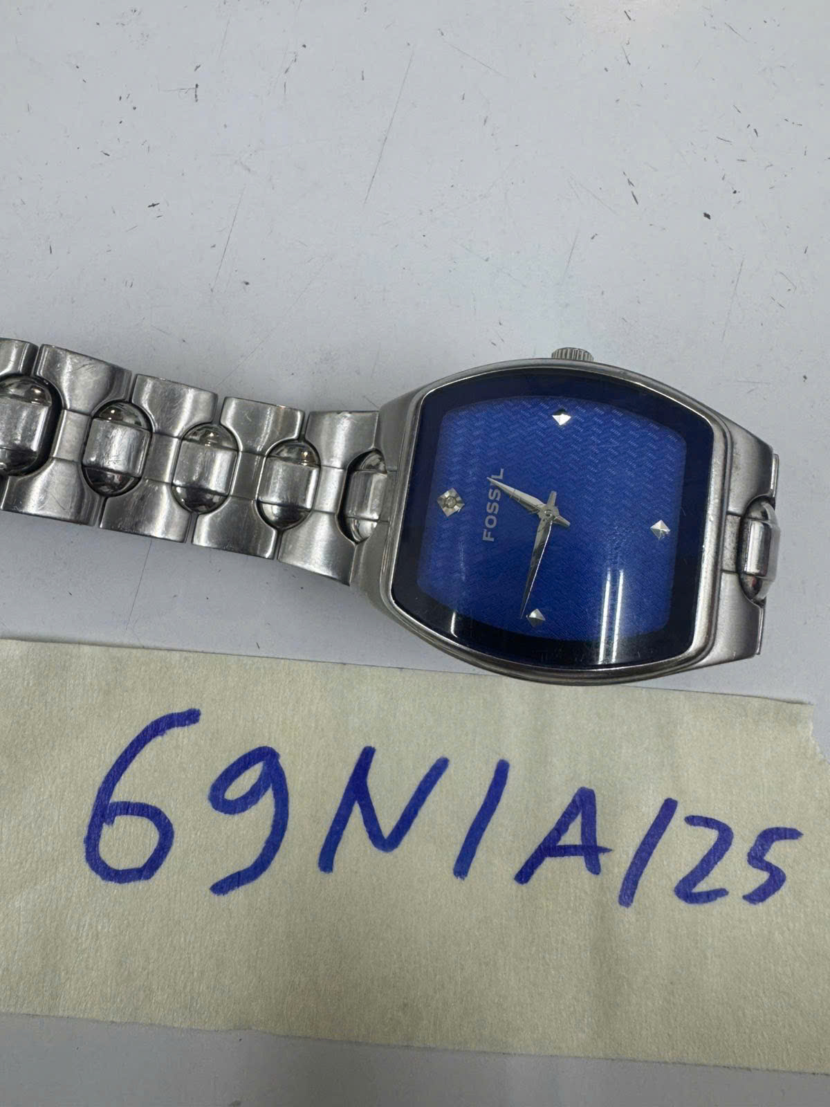 Ngày tiếp nhận: 10/01/2025 Mã hồ sơ: 69N2025A Mô tả: 01 Đồng hồ dây kim loại màu trắng mặt vuông có chữ "FOSSIL". |