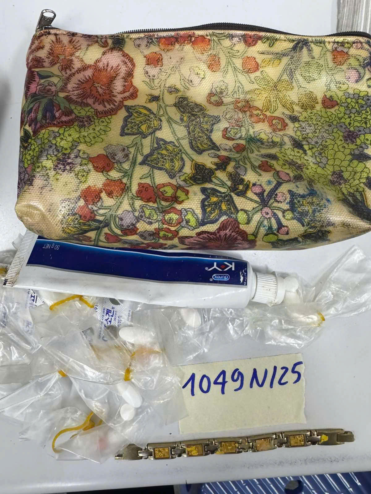 Ngày tiếp nhận: 09/6/2025 Mã hồ sơ: 1049N2025 Mô tả: 01 túi đựng thuốc bằng nhựa, bên ngoài có hình hoa bên trong có chữ Hàn gồm 1 vòng tay bằng kim loại màu vàng cùng 1 số loại thuốc khác nhau. |