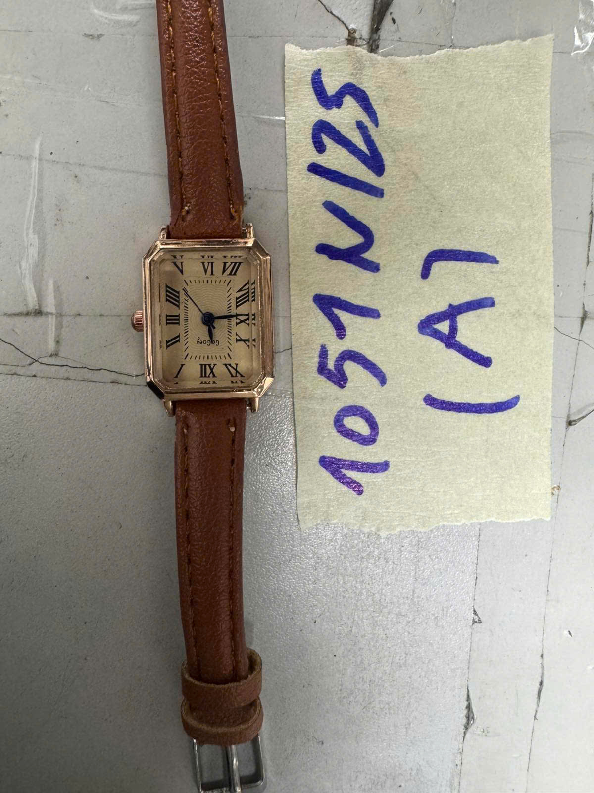 Ngày tiếp nhận: 09/6/2025 Mã hồ sơ: 1051N2025A Mô tả: 01 đồng hồ kim loại mặt hình vuông có chữ GoGeey, dây da màu nâu. |