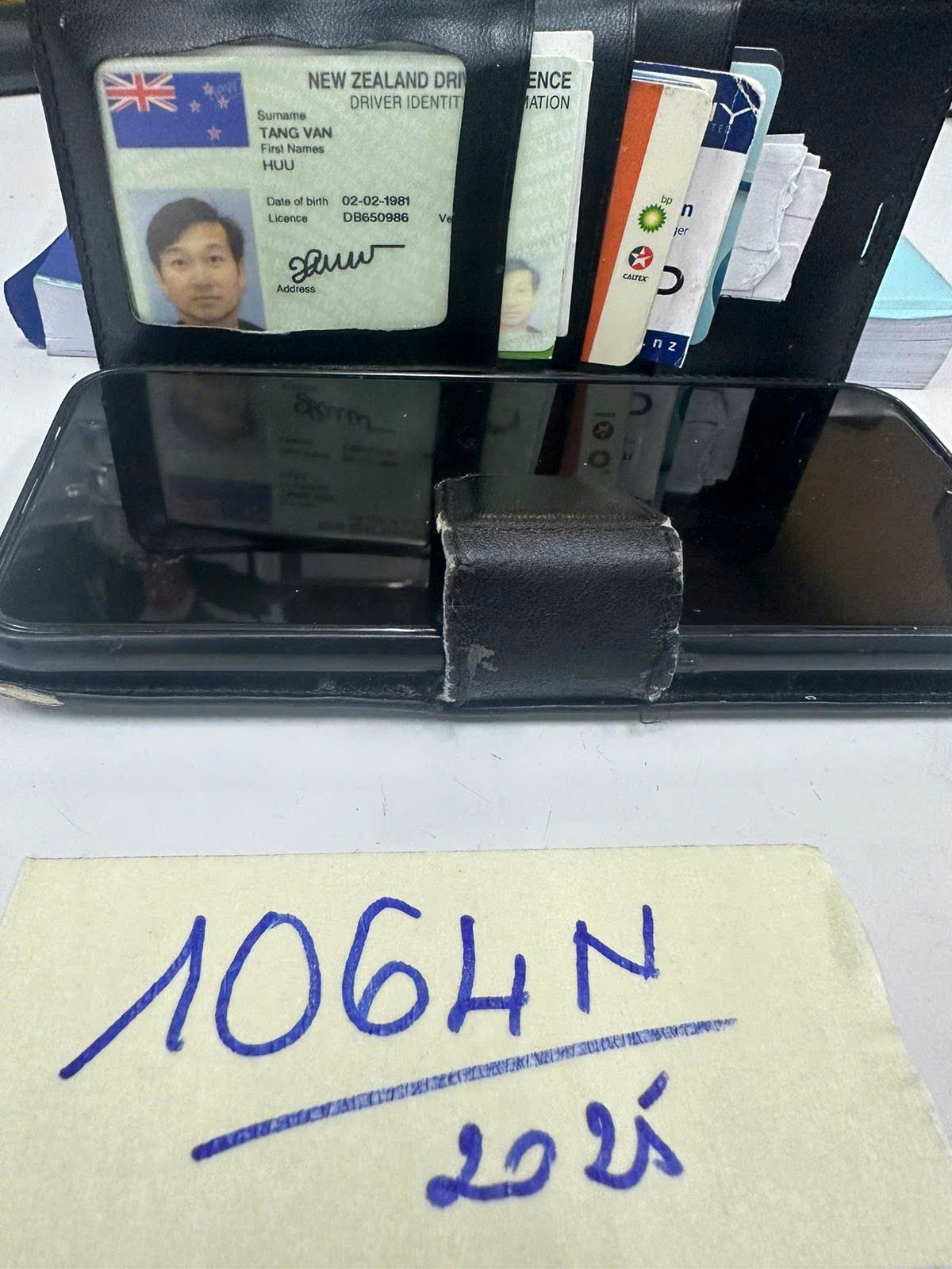 Ngày tiếp nhận: 11/6/2025 Mã hồ sơ: 1064N2025 Mô tả: 01 điện thoại hiệu Oppo, 01 GPLX New Zealand tên TANG VAN HUU và 01 số thẻ ngân hàng. |