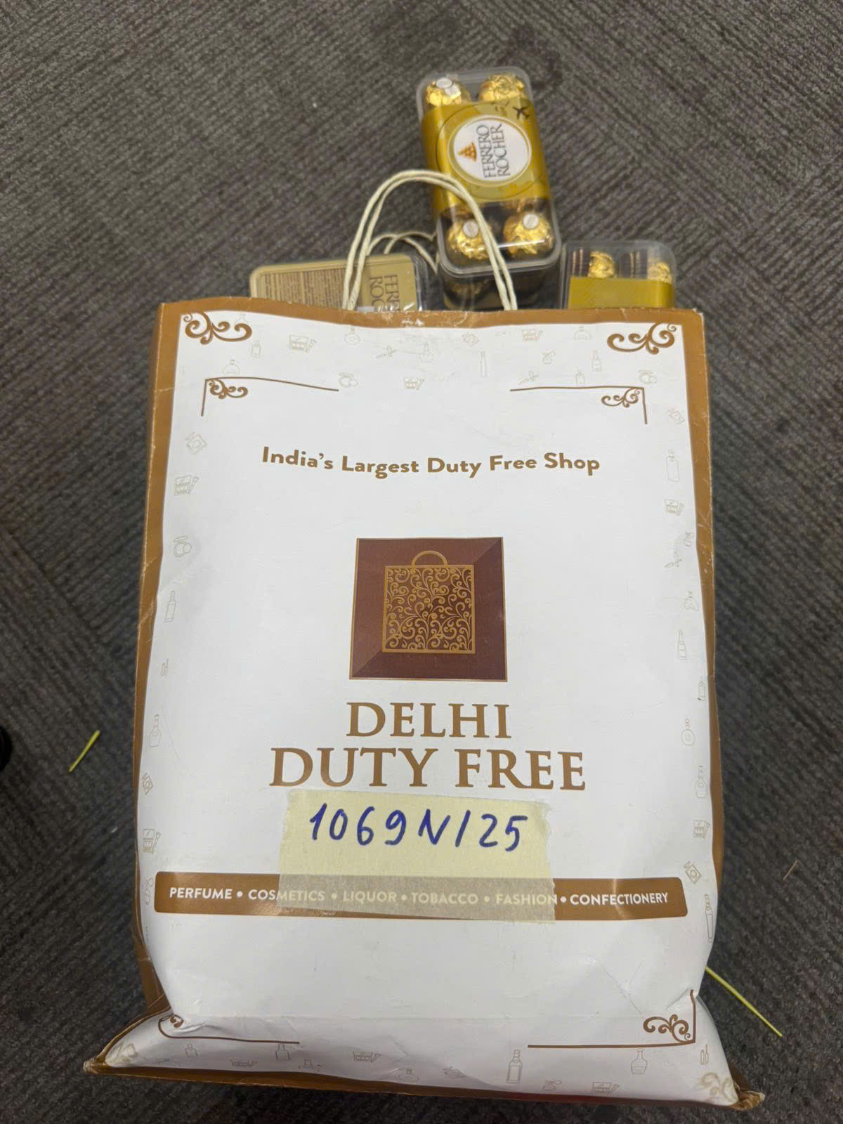 Ngày tiếp nhận: 11/6/2025 Mã hồ sơ: 1069N2025 Mô tả: 01 túi giấy màu trắng bên trong: 04 hộp socola, 02 bịch kẹo socola. |