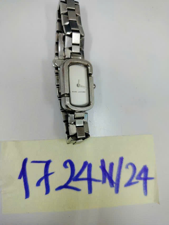 Ngày tiếp nhận: 10/10/2024 Mã hồ sơ: 1724N2024 Mô tả: 01 đồng hồ KL màu bạc, dây KL màu bạc trên đh có chữ Marc Jacobs. |