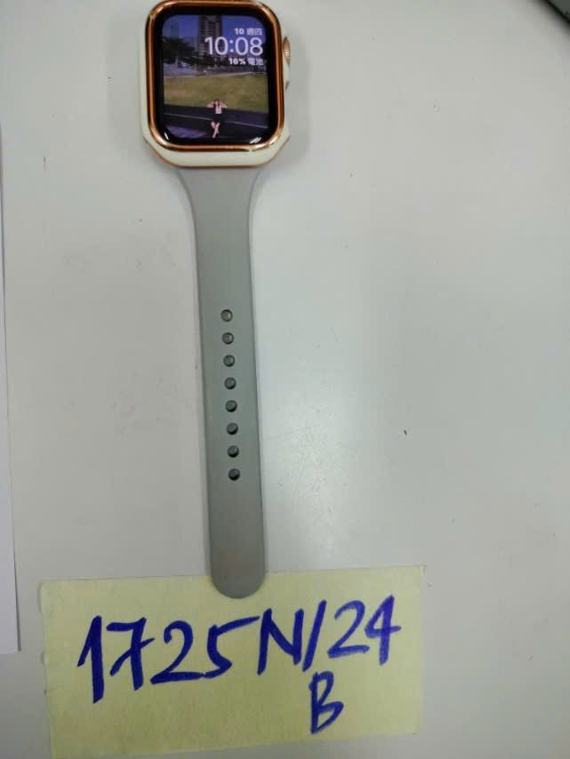 Ngày tiếp nhận: 10/10/2024 Mã hồ sơ: 1725N2024B Mô tả: 01 đồng hồ Apple màu đen viền màu vàng đồng ốp màn hình màu trắng viền màu vàng dây đeo cao su màu xám. |
