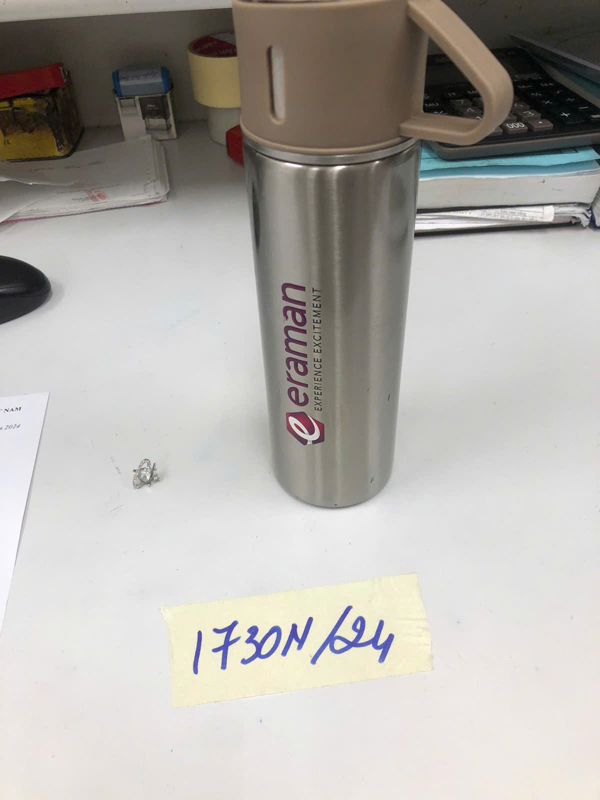 Ngày tiếp nhận: 10/10/2024 Mã hồ sơ: 1730N2024 Mô tả: 01 bông tai nữ trắng bằng kim loại và một bình nước bằng kim loại đã qua sử dụng. |