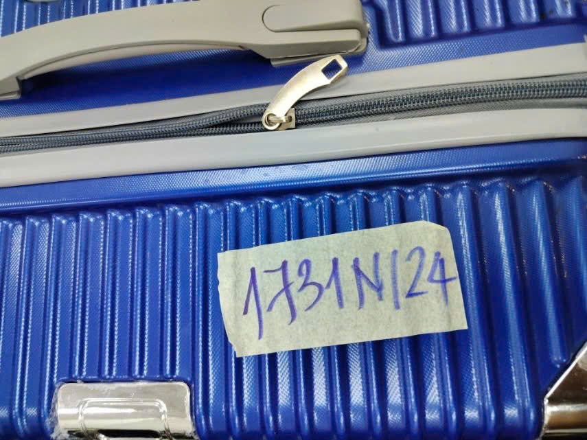 Ngày tiếp nhận: 10/10/2024 Mã hồ sơ: 1731N2024 Mô tả: 01 vali màu xanh bên trong có đồ ăn. |