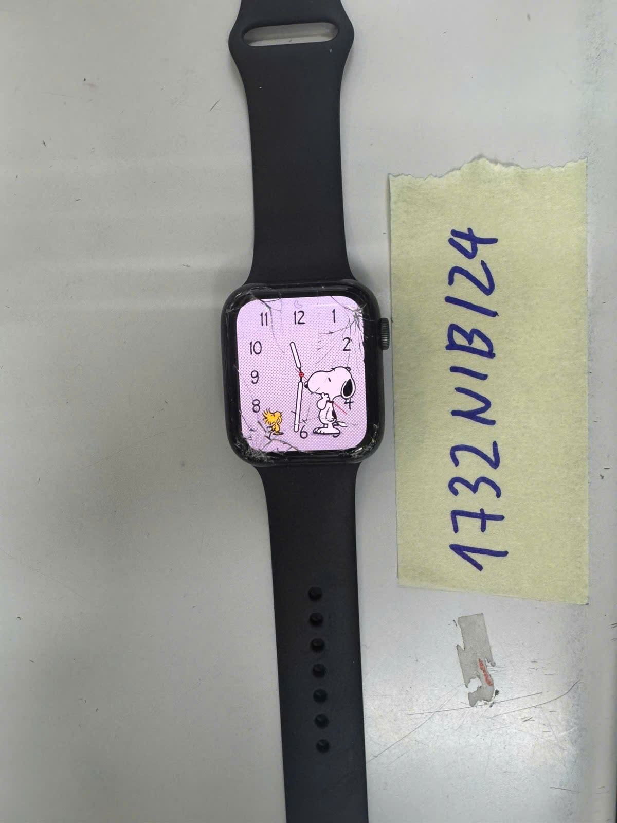 Ngày tiếp nhận: 10/10/2024 Mã hồ sơ: 1732N2024B Mô tả: 01 đồng hồ điện tử màu đen mặt sau có chữ Watch series 5, mặt đồng hồ đã bị vỡ. |