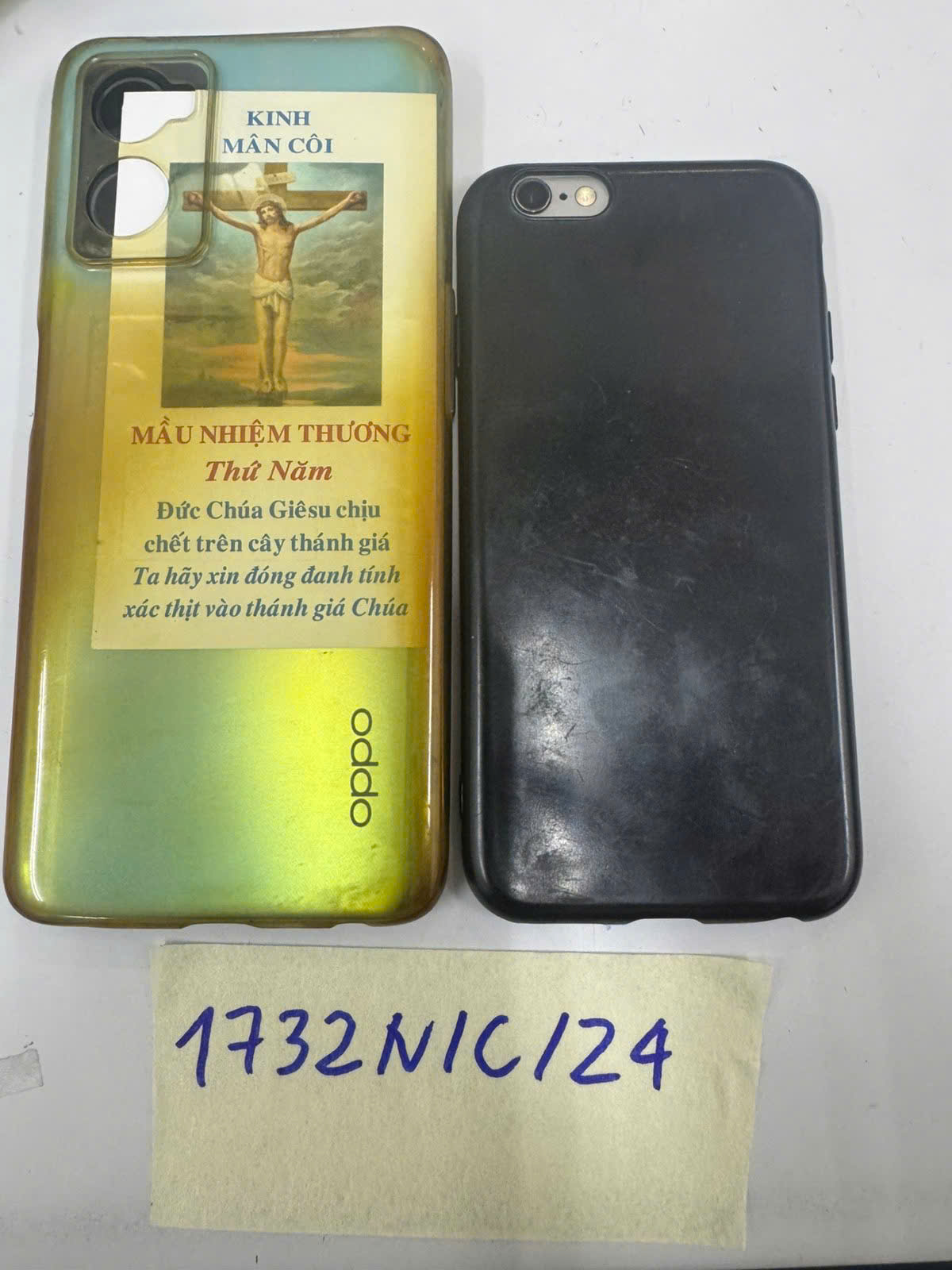 Ngày tiếp nhận: 10/10/2024 Mã hồ sơ: 1732N2024C Mô tả: 02 điện thoại thông minh (một điện thoại chữ OPPO màu xanh da trời và một điện thoại có chữ iPhone S màu xám có ốp màu đen). |