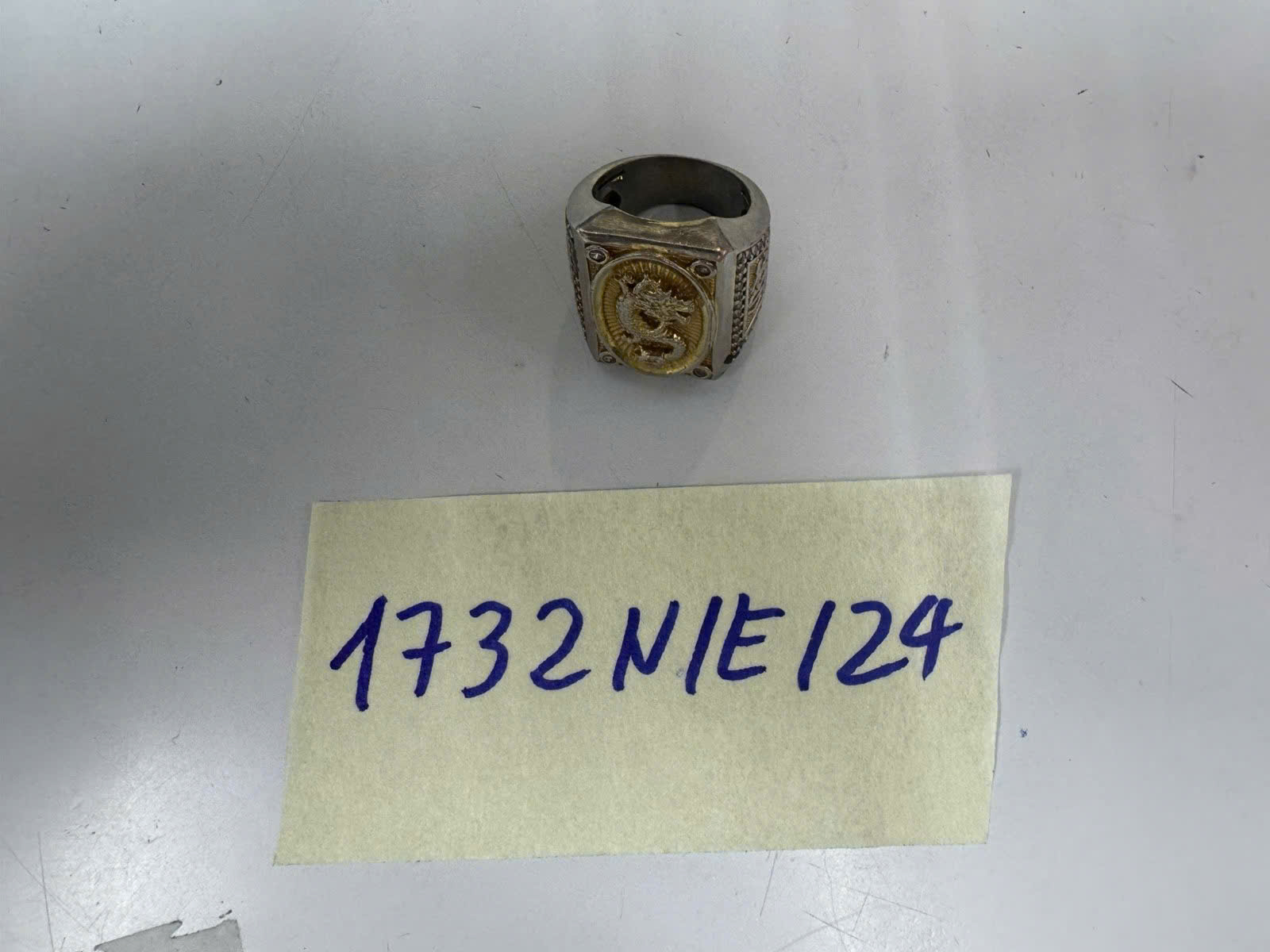 Ngày tiếp nhận: 10/10/2024 Mã hồ sơ: 1732N2024E Mô tả: 01 nhẫn kim loại màu vàng bạc cố gắng hộp nhỏ màu trắng. |